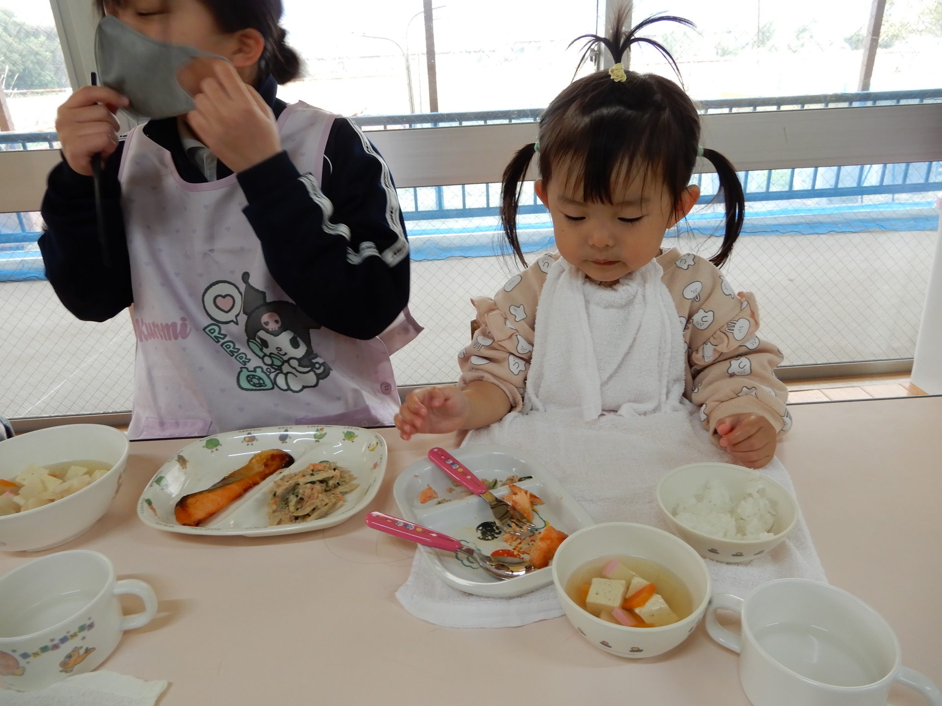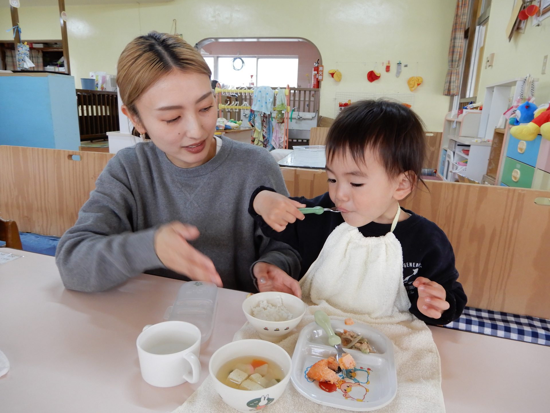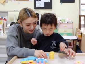 保育参観(さくら1歳児) 今日は、WくんとKちゃんの保育参観でした✨ とっても嬉しそうなWくんとKちゃん😊 リトミックあそびも楽しみました(^^♪ まねっこあそびも上手です💕 ブロック遊びも真剣⭐ 給食もおいしくいただきました💛 今日はお忙しい中、ありがとうございました😊