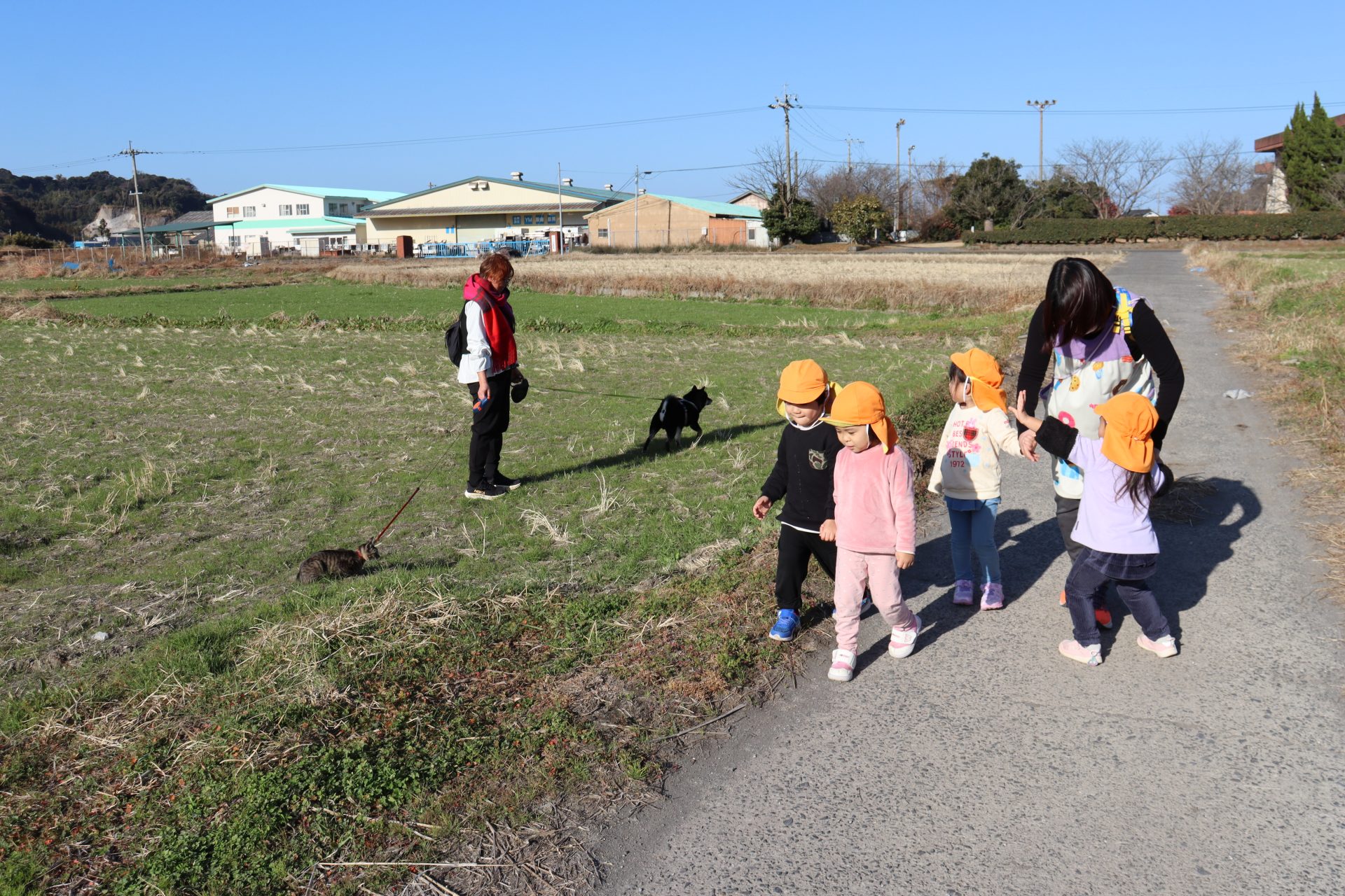 途中でお散歩中の犬さんと猫さんに遭遇💕