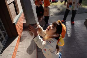 鐘を鳴らすのも一苦労で一生懸命です💛
