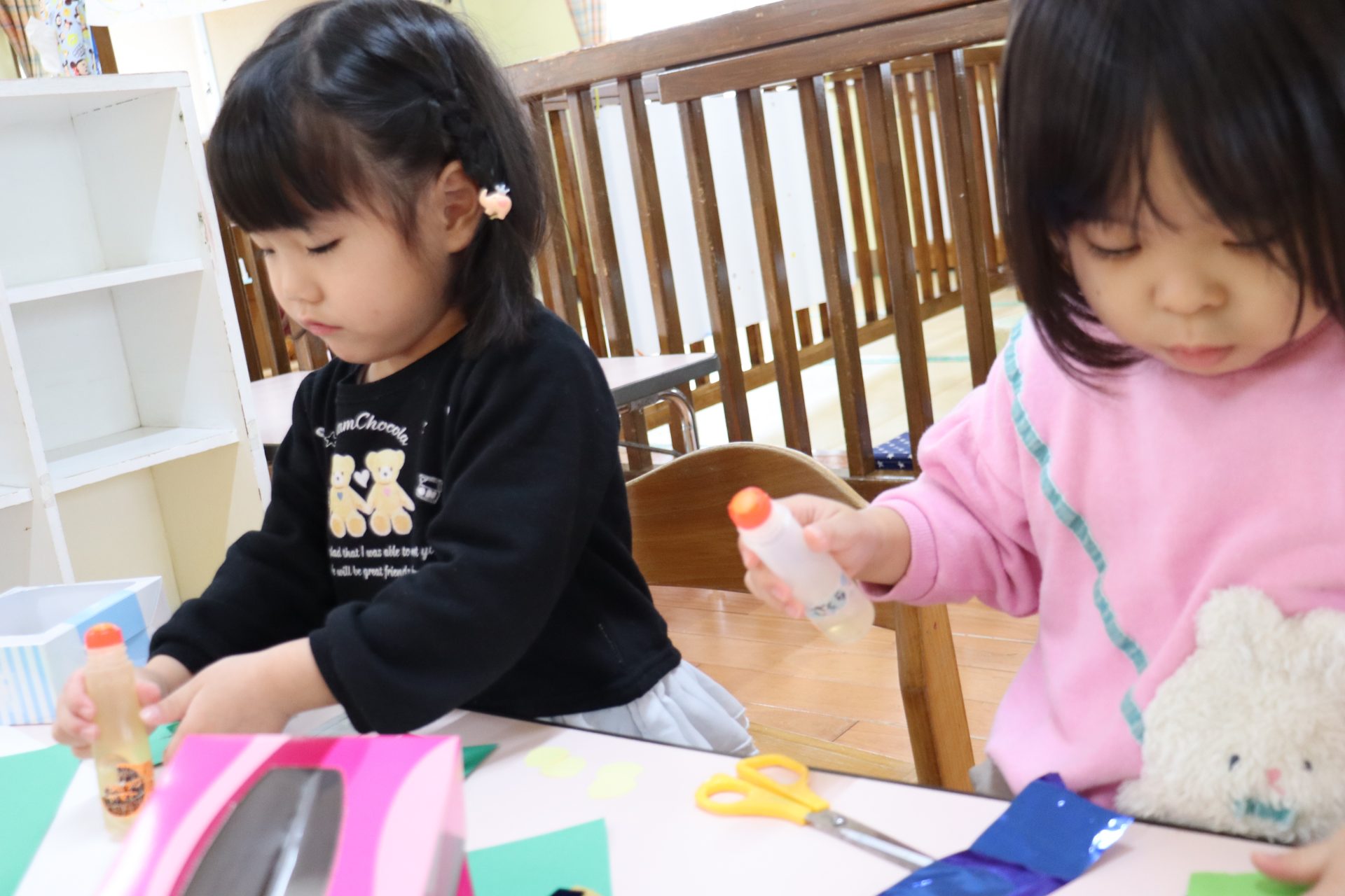 今日はハサミとのりを使って、自分たちの作りたいものを作って遊びました🎵