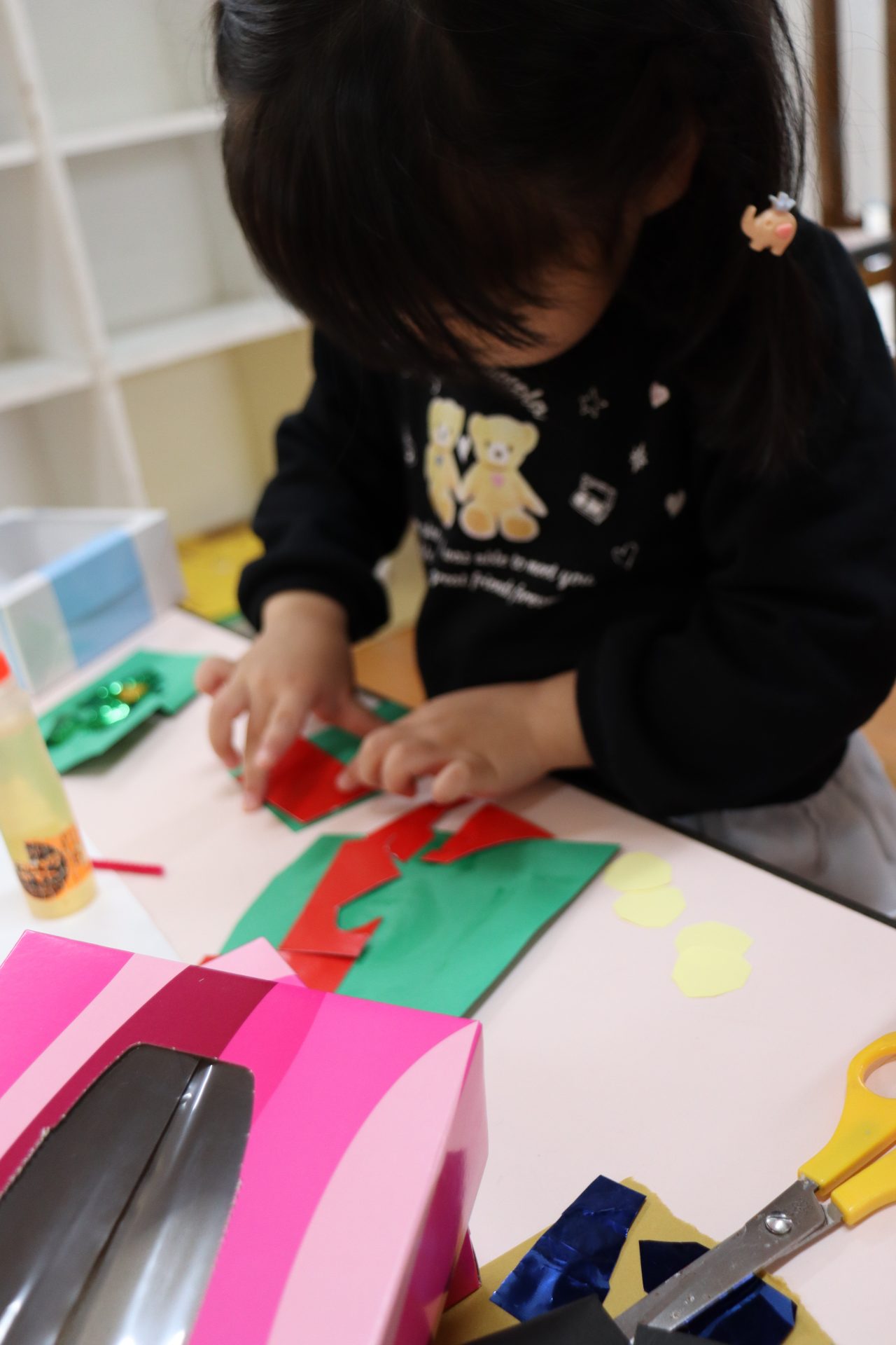 ひとつのハサミを交代で仲良く使うこともできる2歳児さん💓