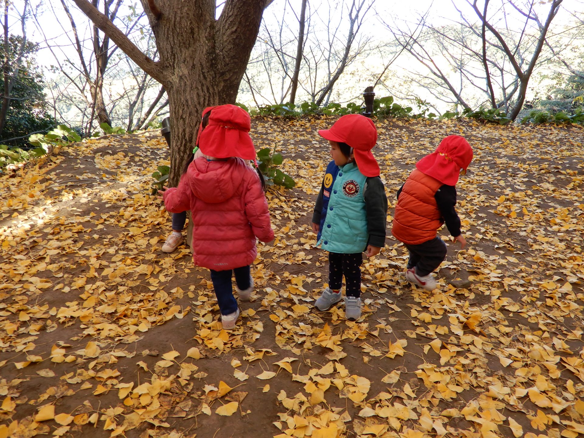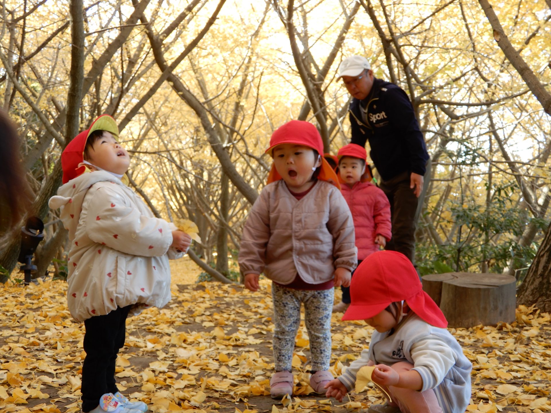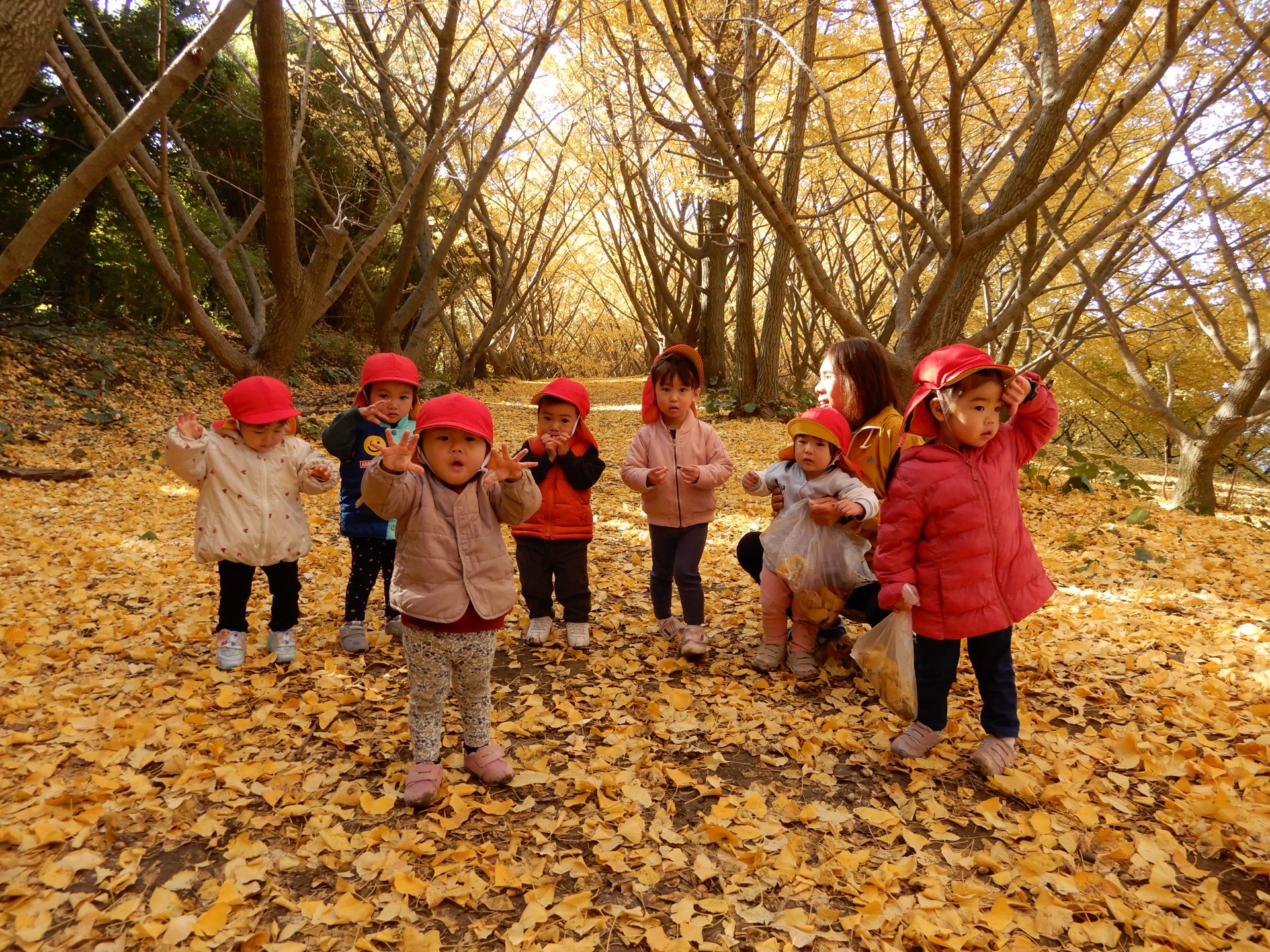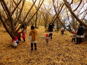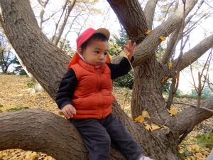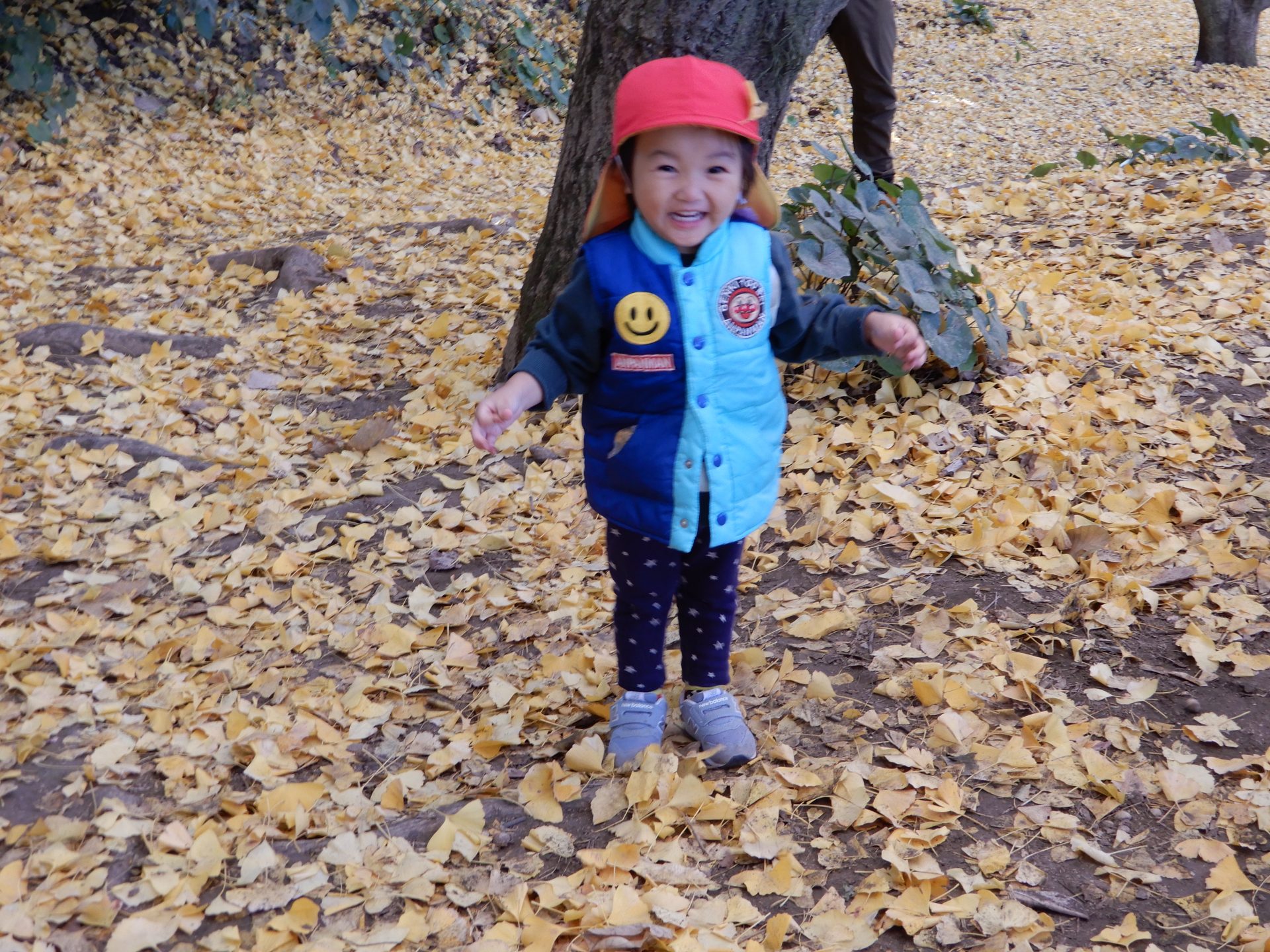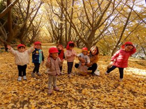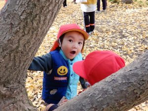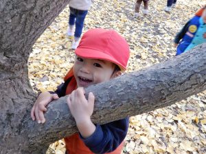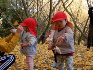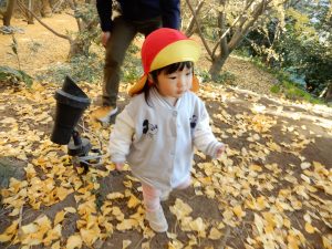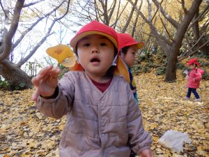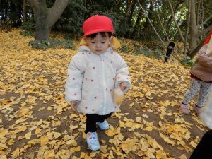 笑顔いっぱいで、走ったり、葉っぱ拾いをしたり、ながめたり、