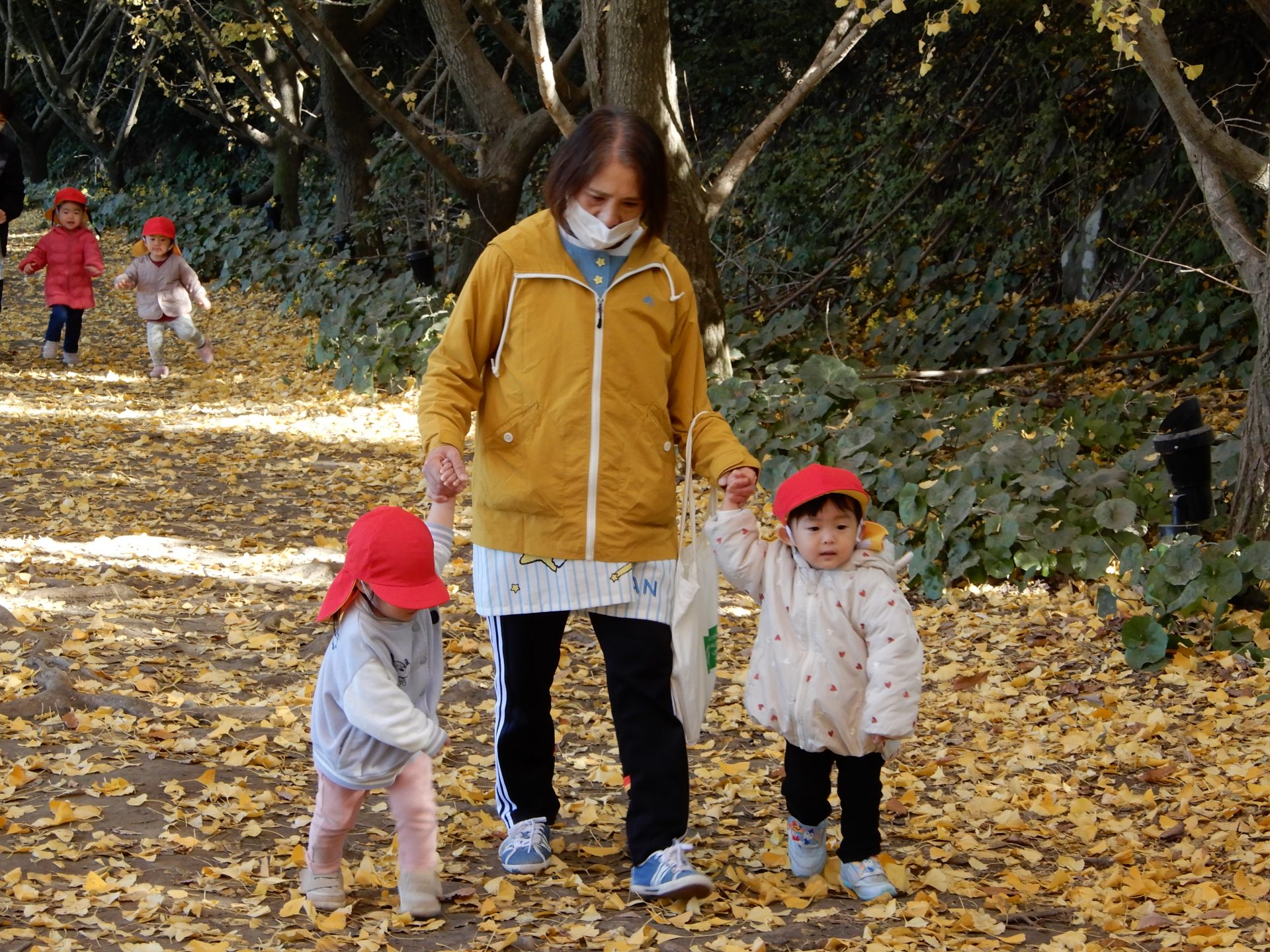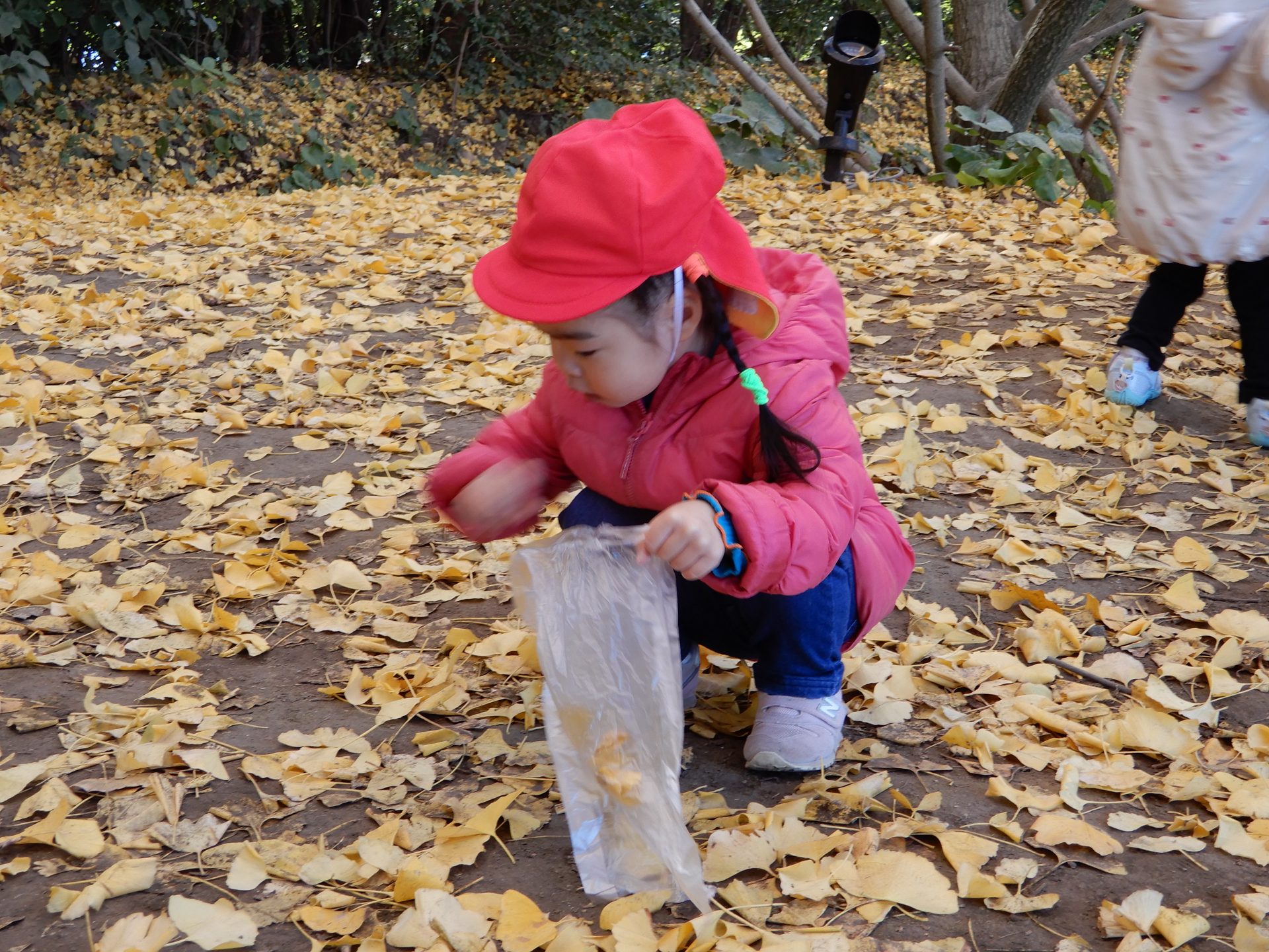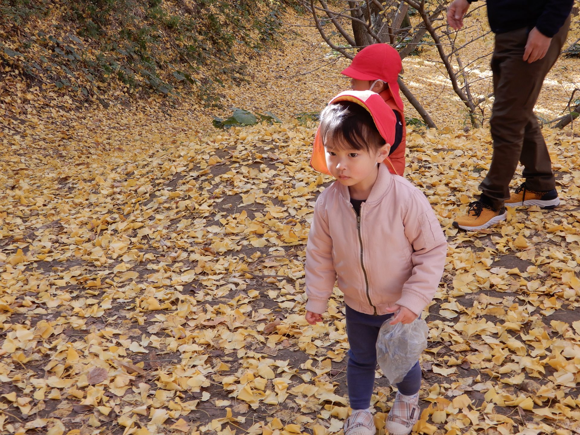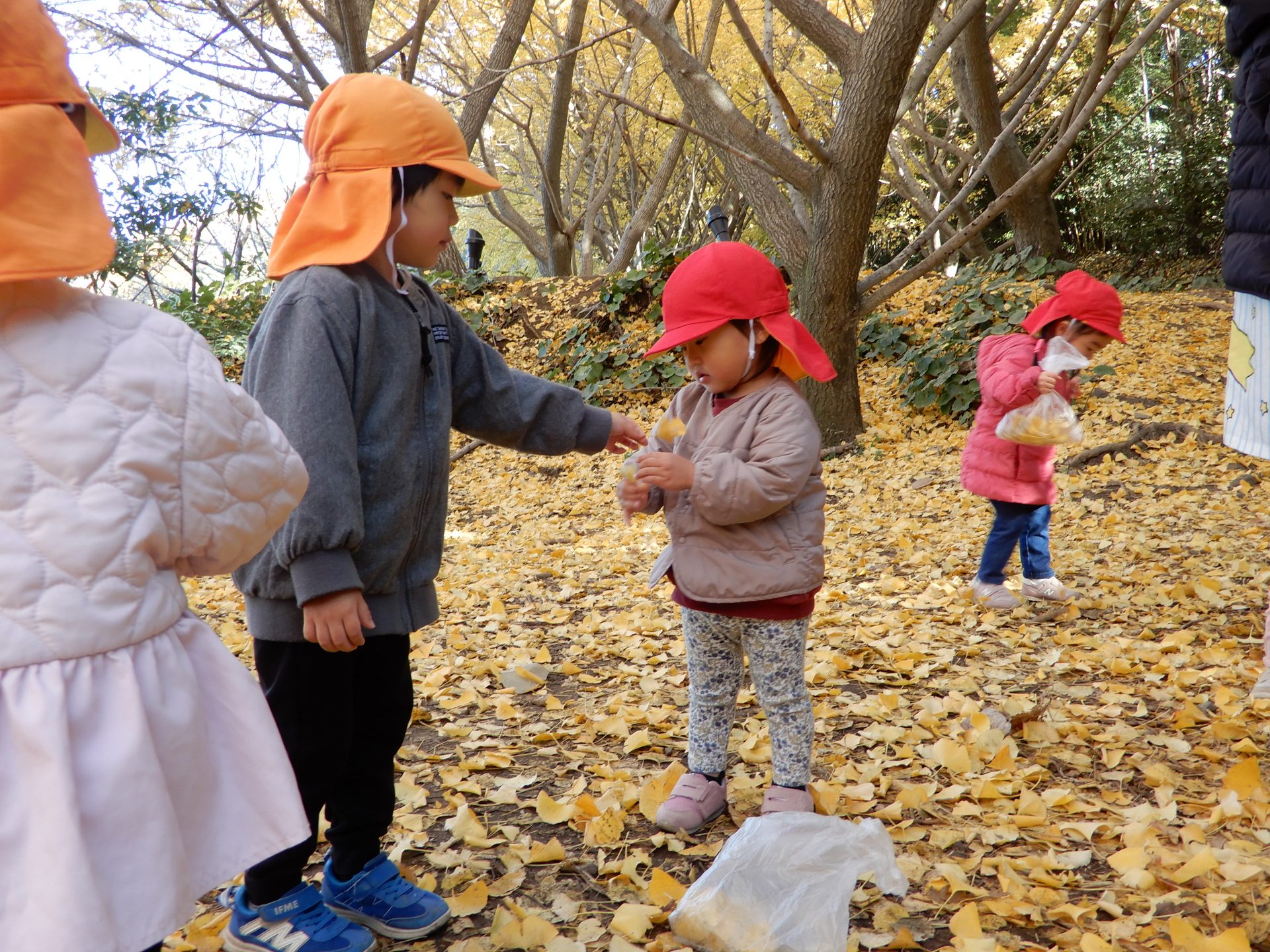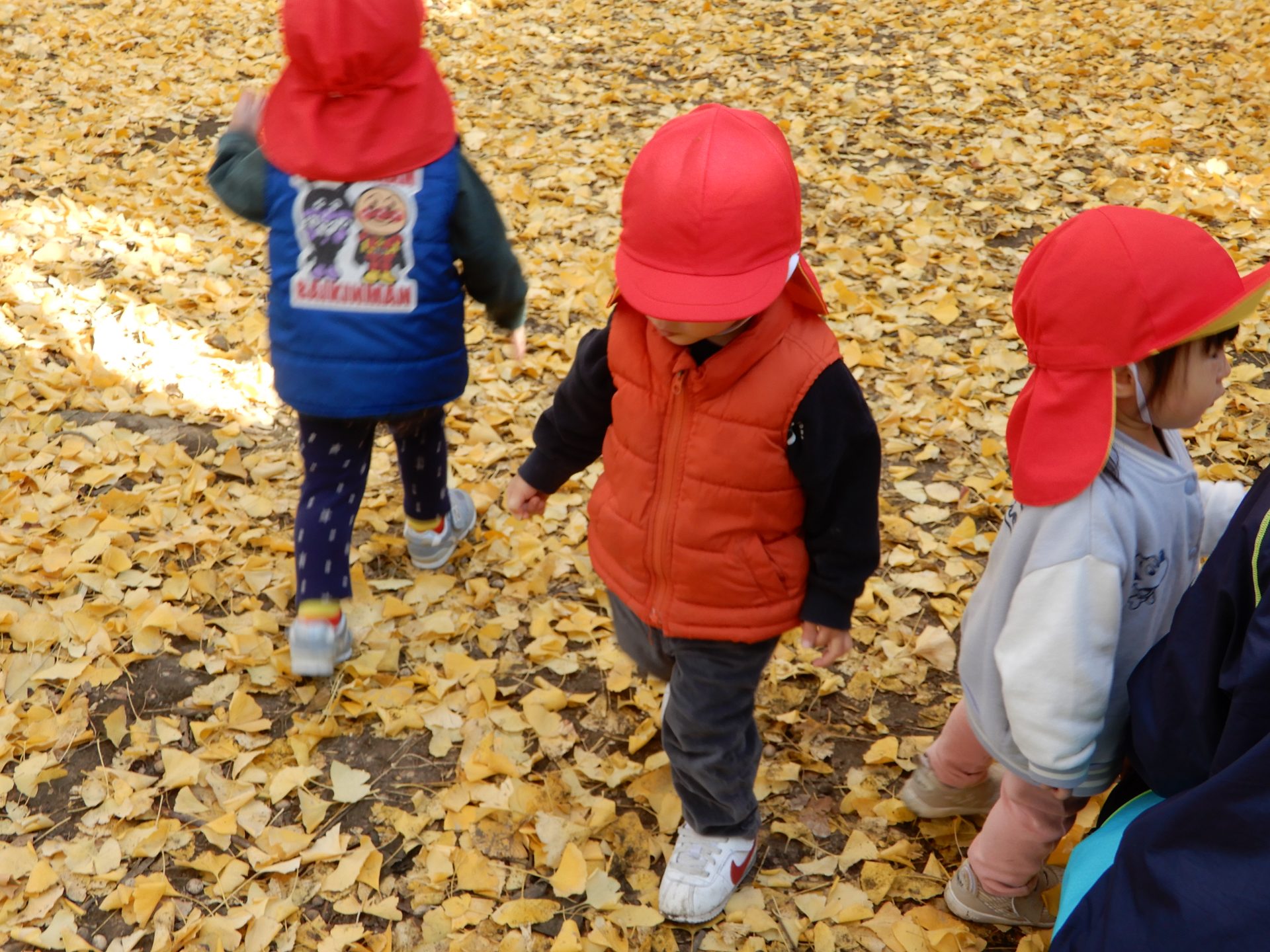 笑顔いっぱいで、走ったり、葉っぱ拾いをしたり、ながめたり、