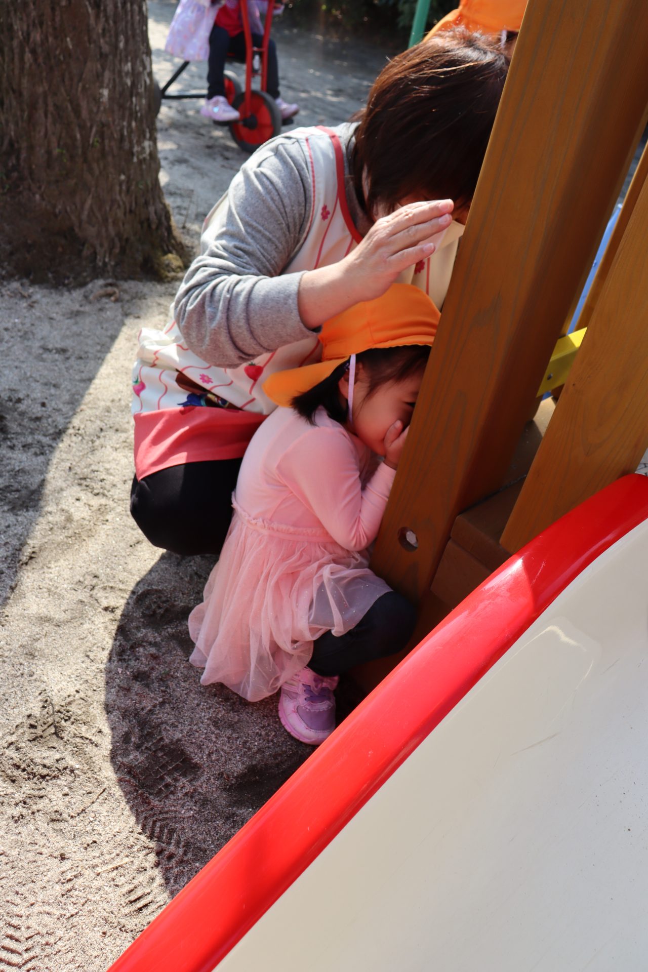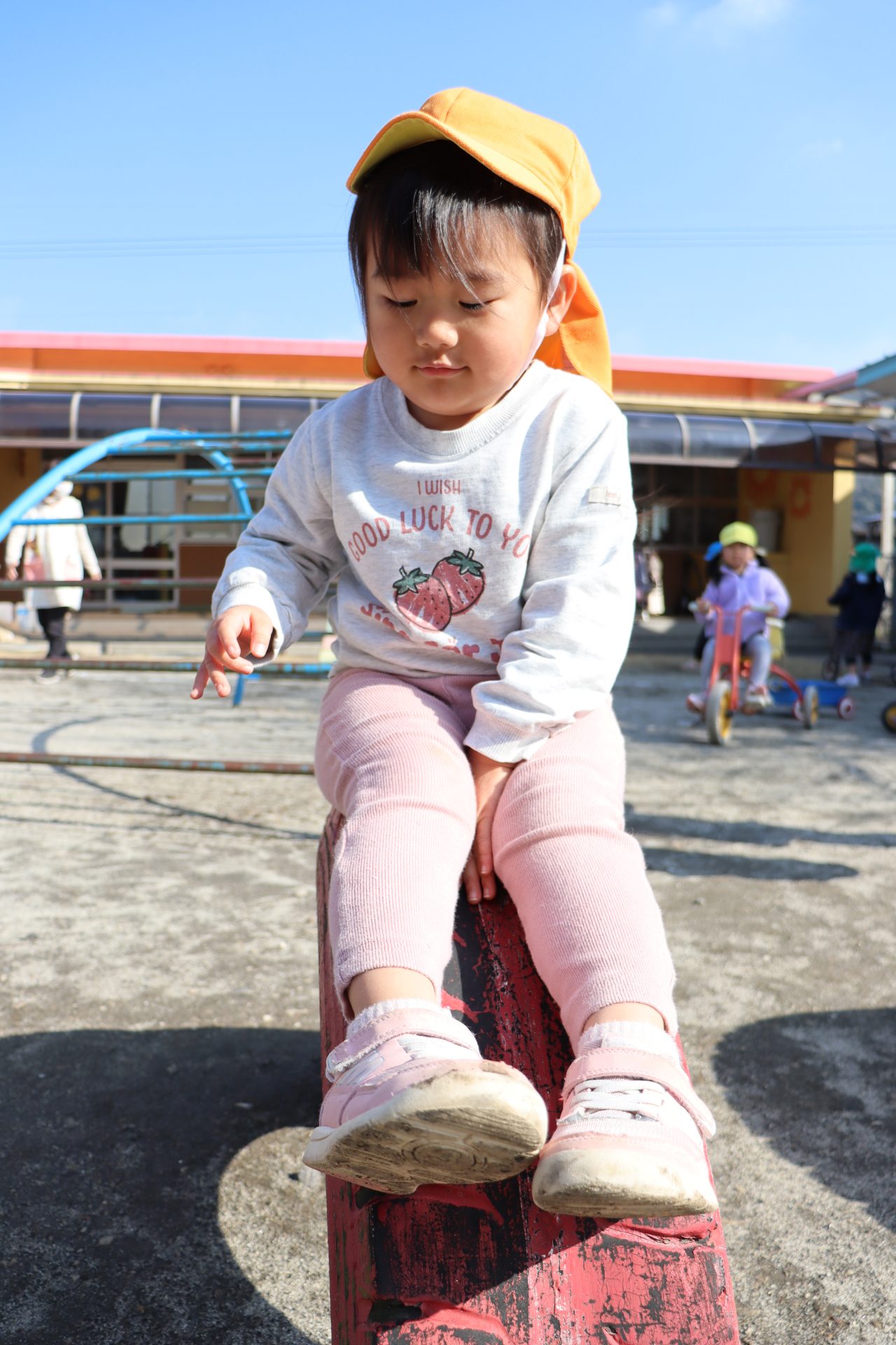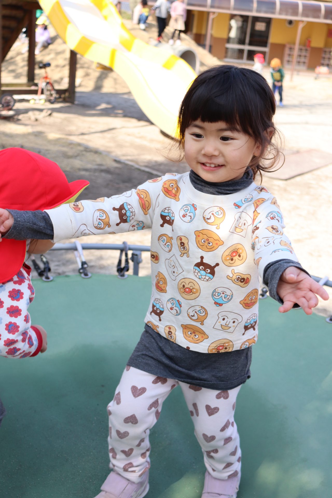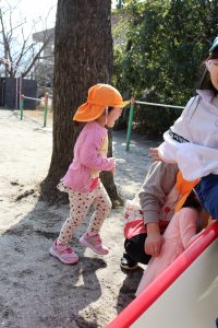 外遊び🎵2歳児 今日は、いつもより暖かく過ごしやすい一日でした🎵 水筒もいつの間にか飲み干していたSちゃん! 「ひとりで大丈夫~」と言い、給食室まで一人でお水を貰いに 行くことができたSちゃん✨すっかり頼もしくなった背中に成長を感じました💓 ぷはぁ~と言いながら飲んでいましたよ~(*^^*) 跳び箱だってしちゃうよ~⭐ 大きな雲を描いてみたり~ トランポリンも楽し~い! 見つからないように隠れて~(>_<) 鬼ごっこや、かくれんぼ、アイスクリーム屋さんごっこをしたり🎵 今日も、たくさん遊ぶことができました(*^^*) 明日もいっぱい遊ぼうね~!(^^)!
