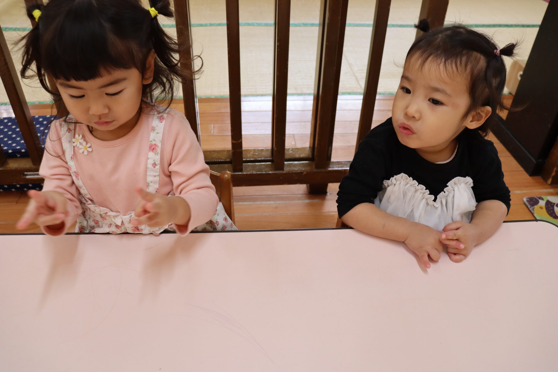 保育室から餅つきの準備する光景を見ていたお友だち🎵