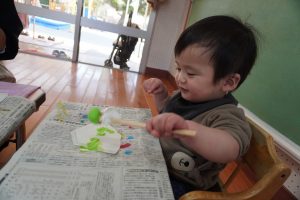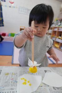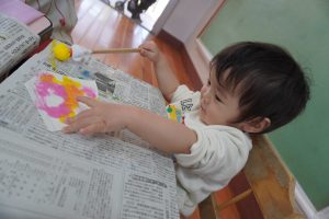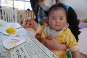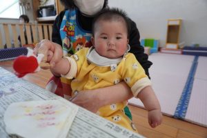 子ども達も「ぺったん…ぺったん…」と声に出しながら、スタンプ遊び…😄