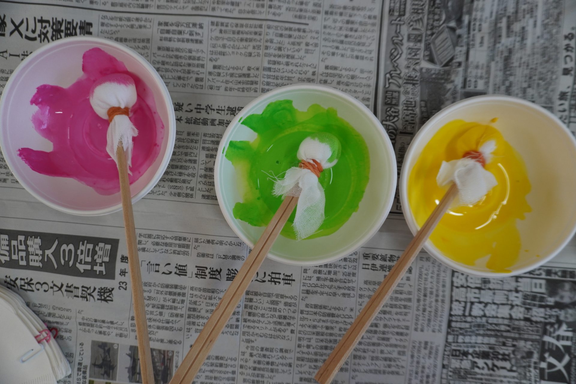 絵の具やタンポ等…初めてのものを見て、子ども達の瞳がキラリ…✨✨