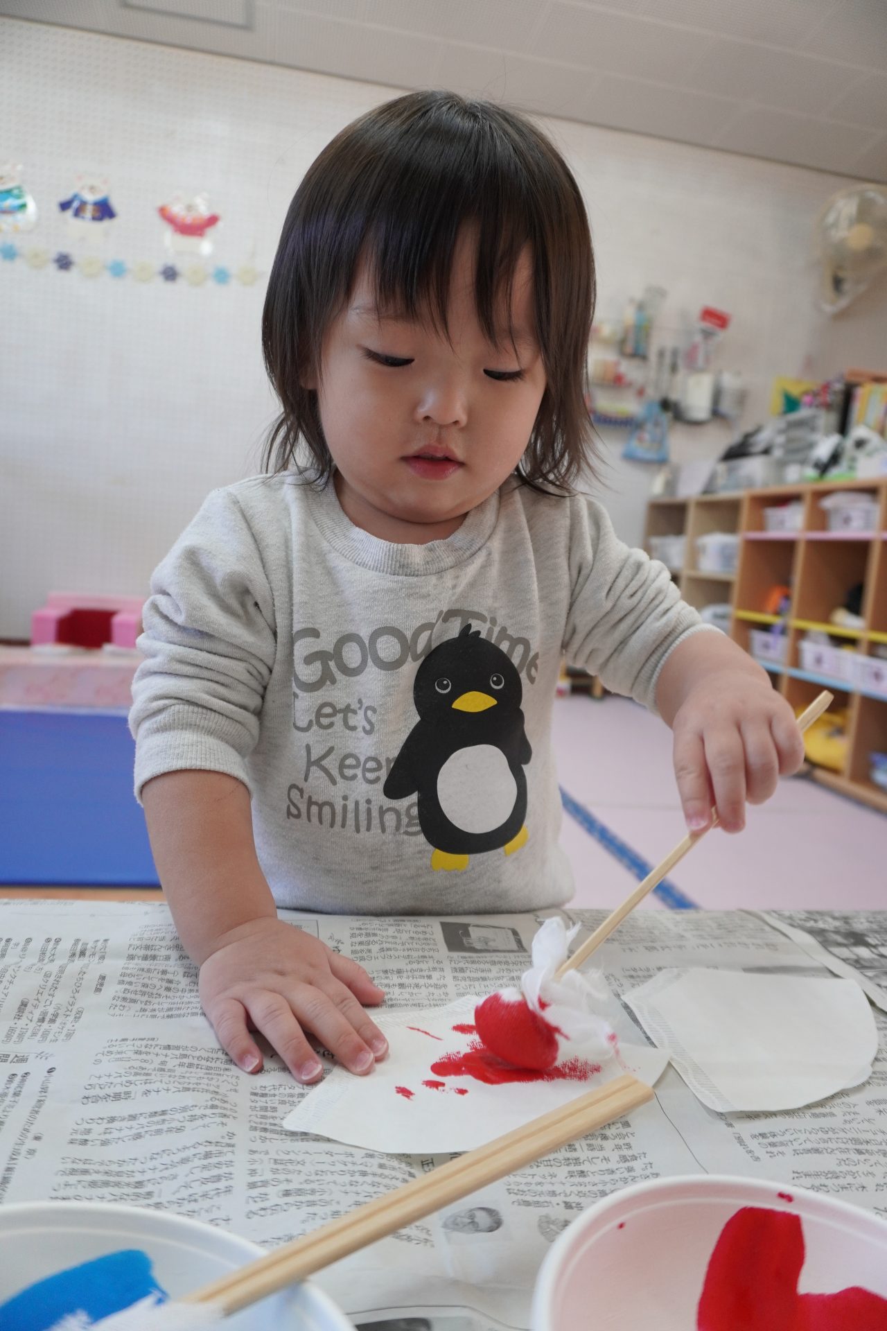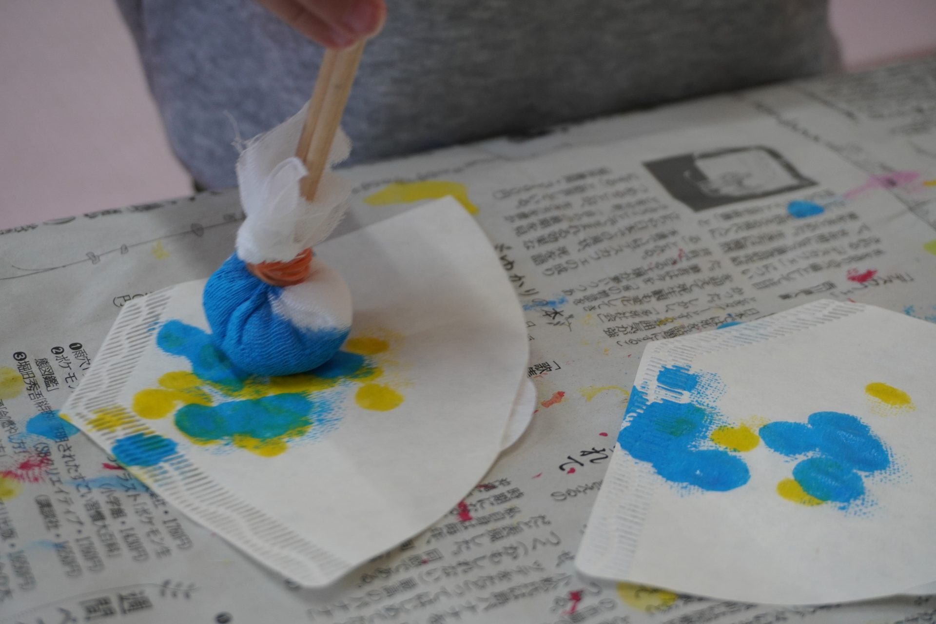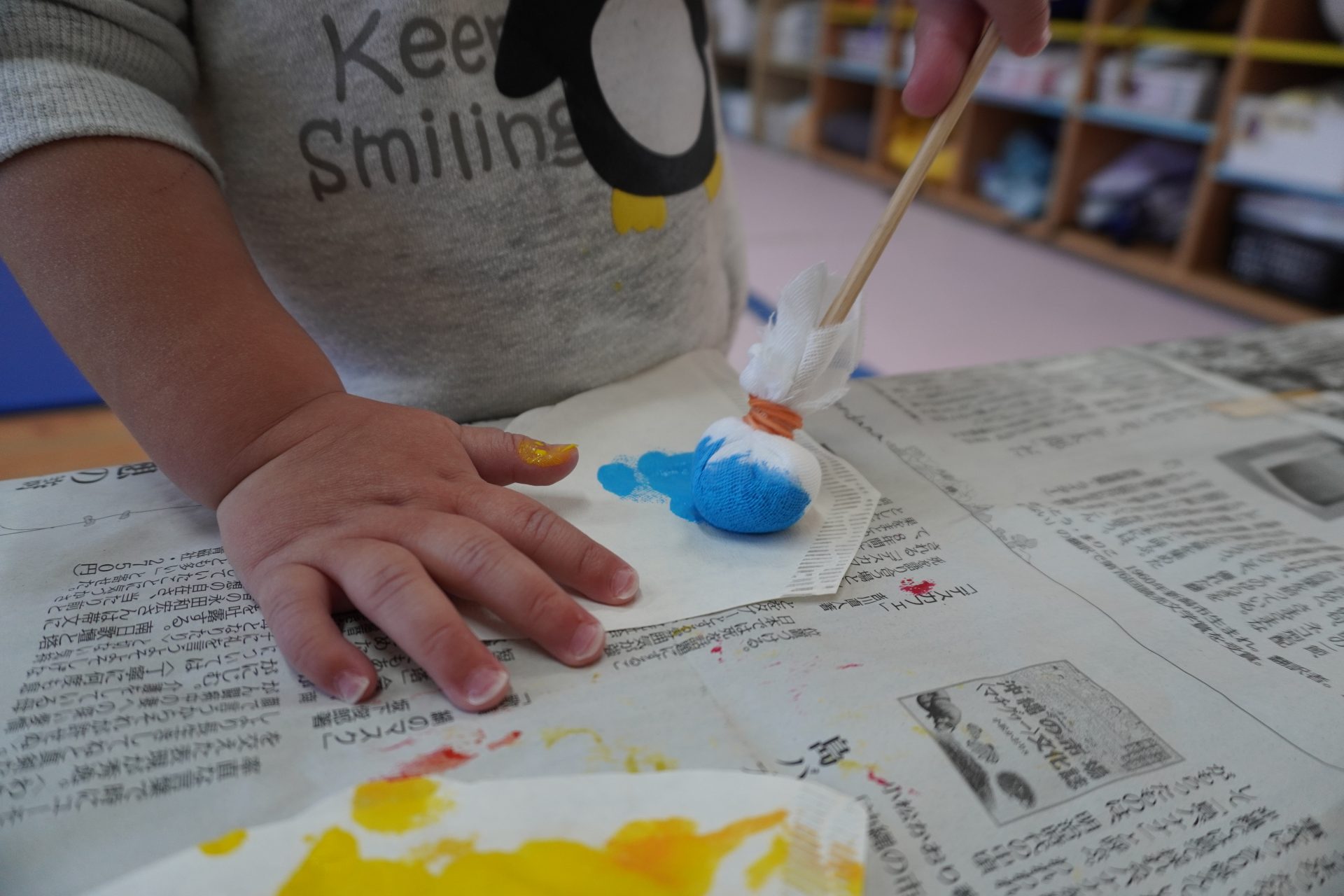 子ども達も「ぺったん…ぺったん…」と声に出しながら、スタンプ遊び…😄