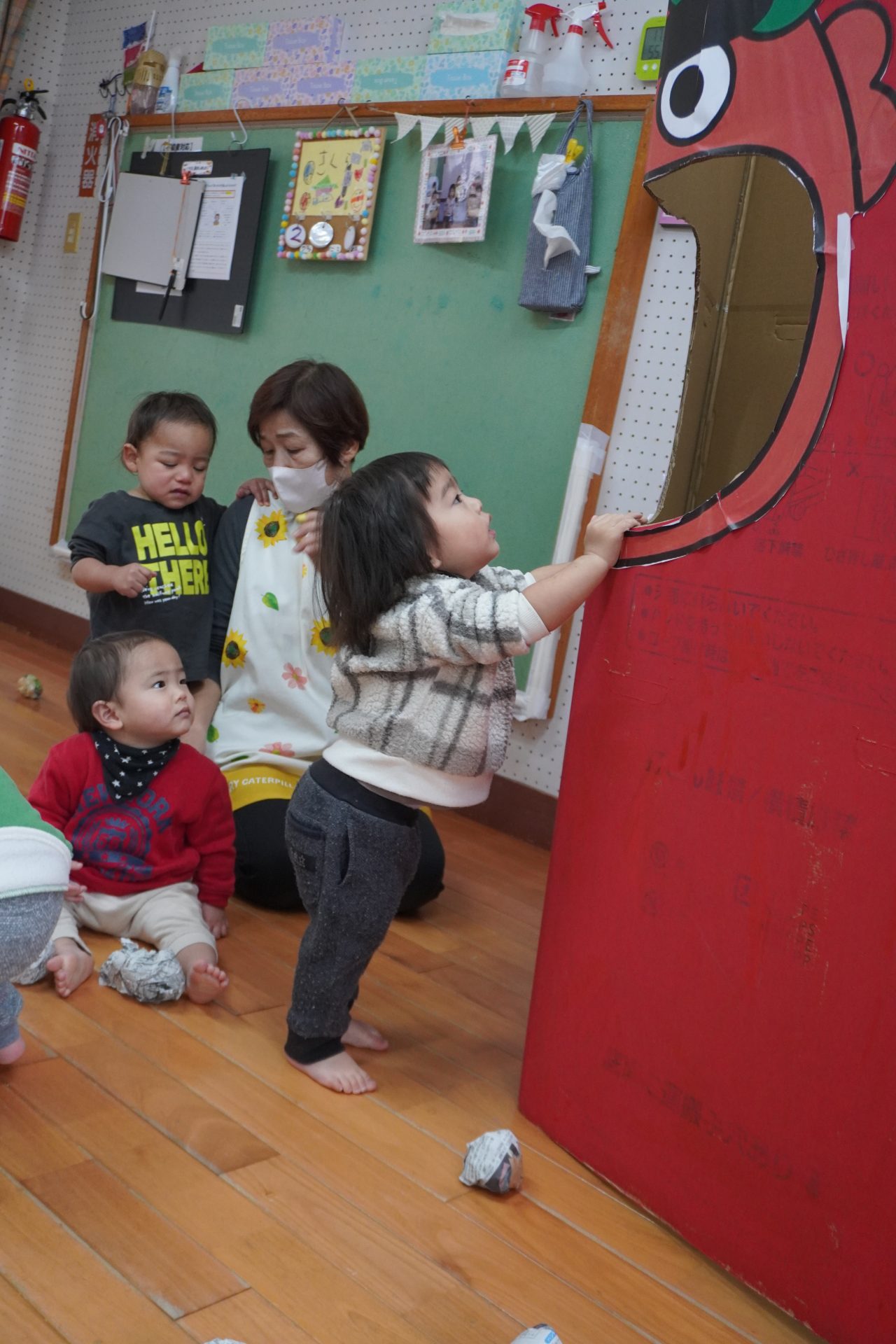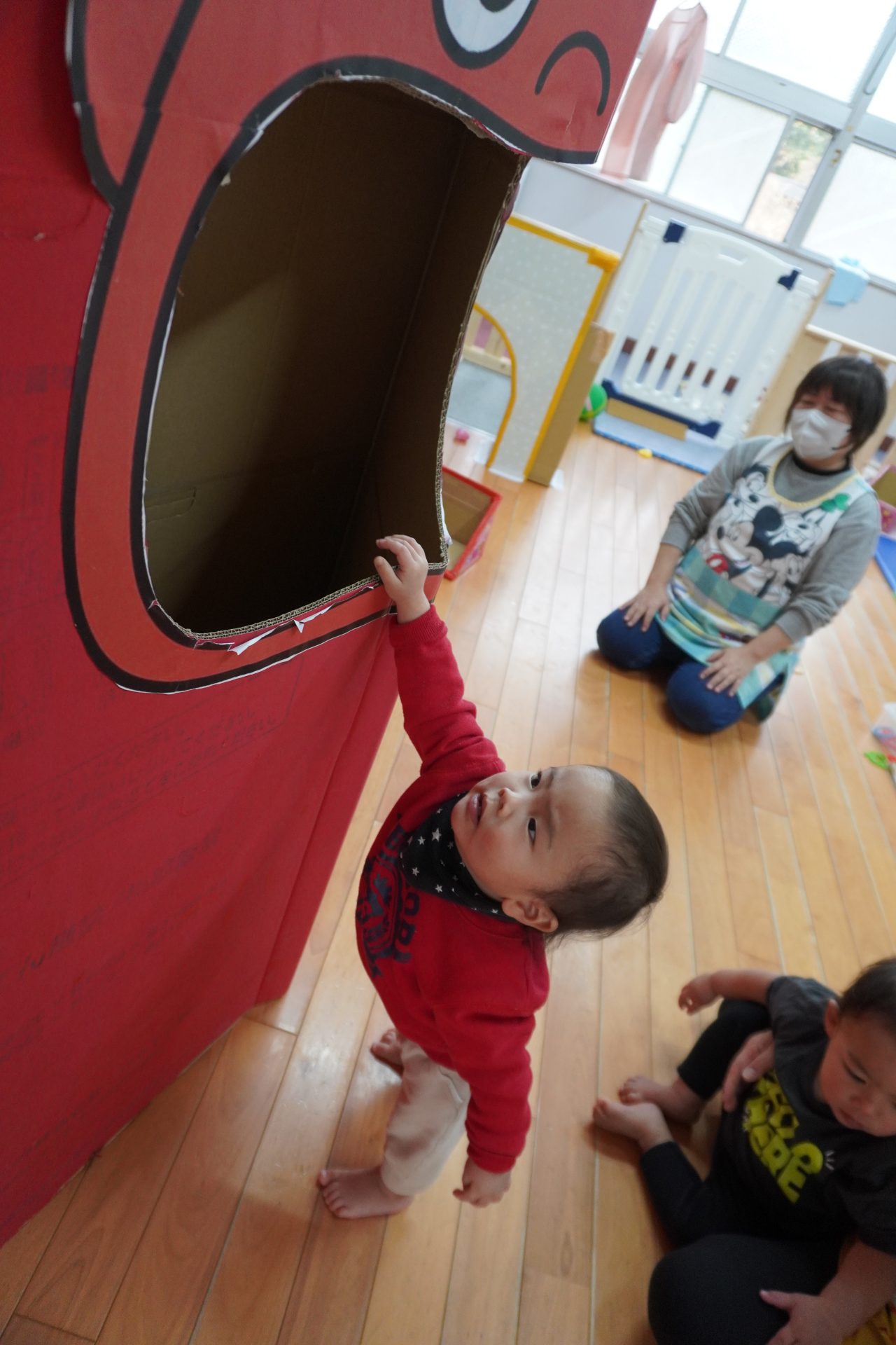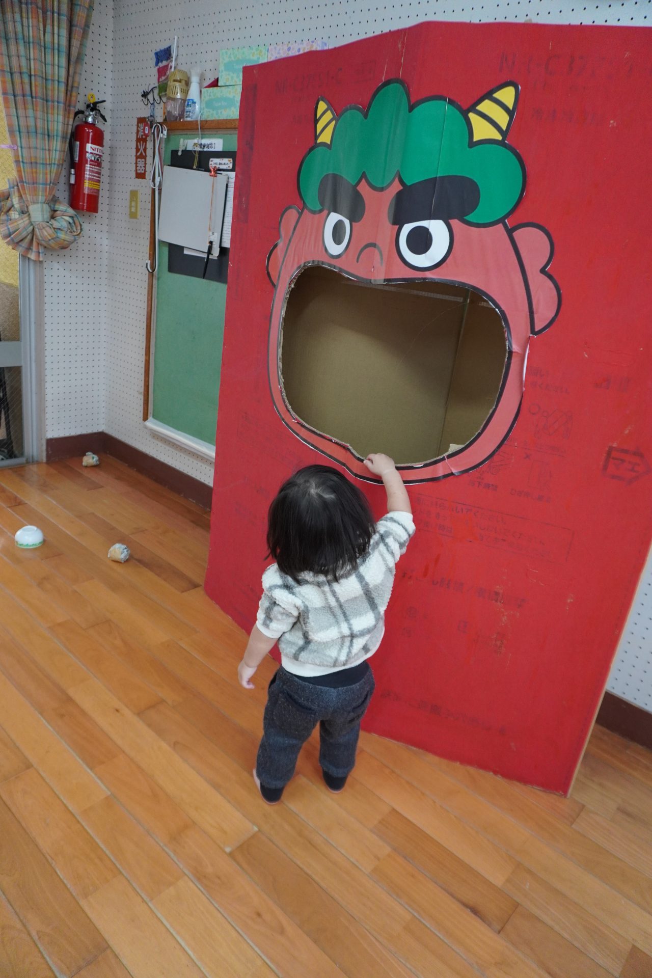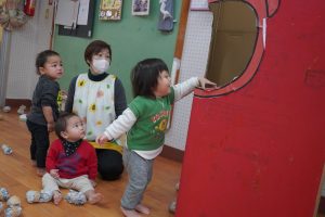 さてさて…子ども達の反応は…👹 鬼さんの大きな口に興味津々…💋