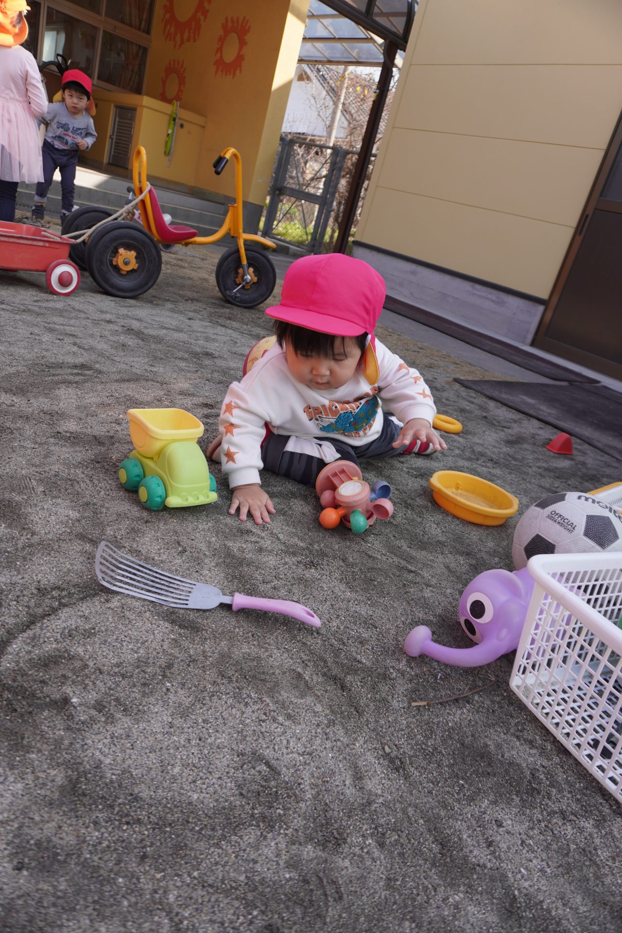 RくんとKくんは、砂場で砂いじりをしたり、大好きな車に登ったり…💕🥰