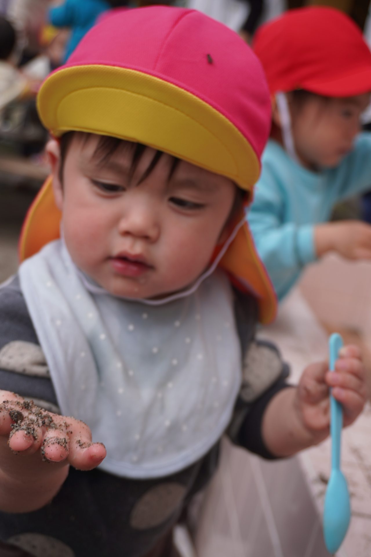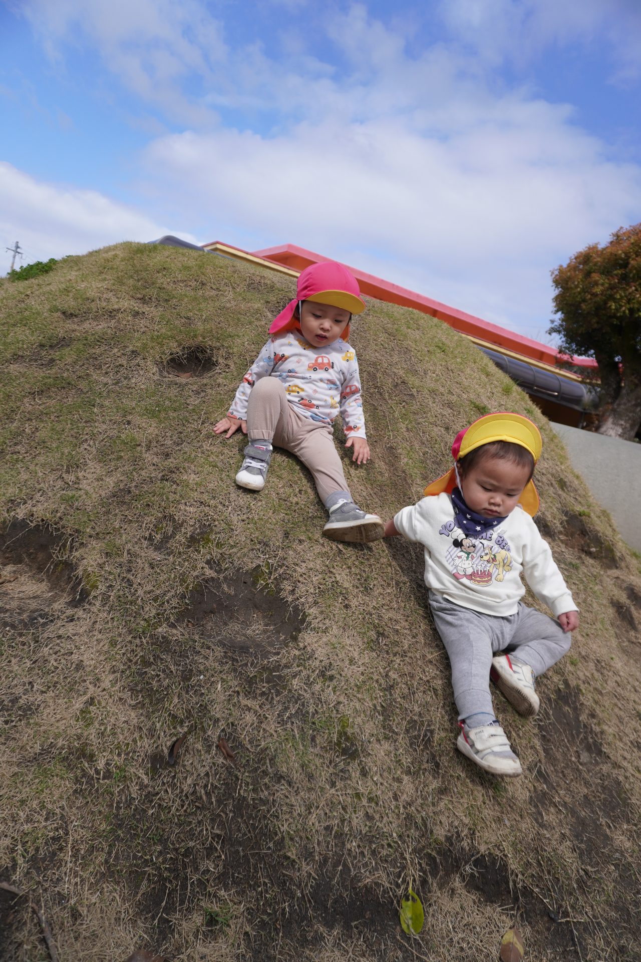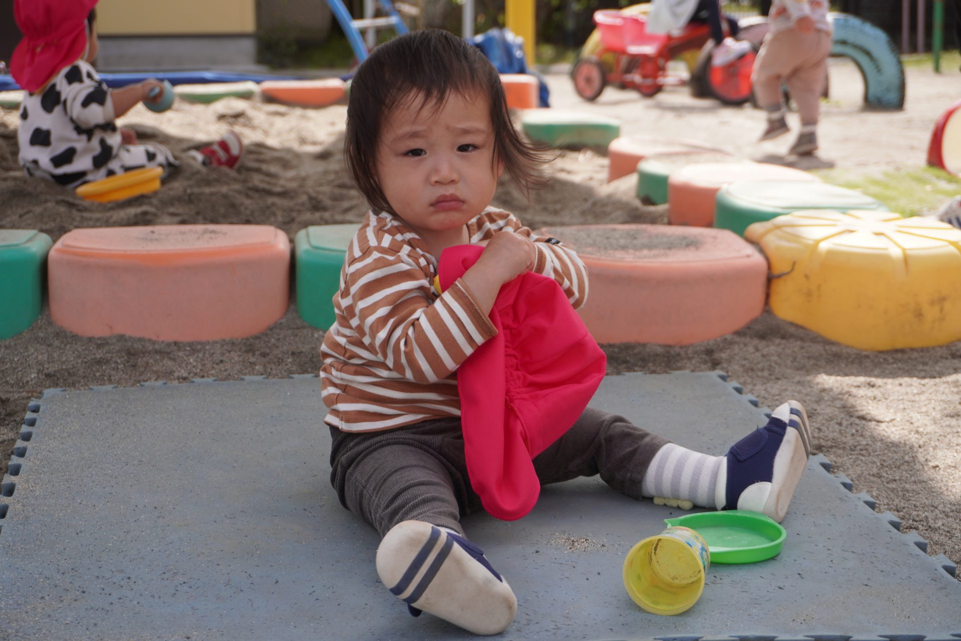 初めての園庭🌟デビュー✨✨カラー帽子が気になるみたい…💕
