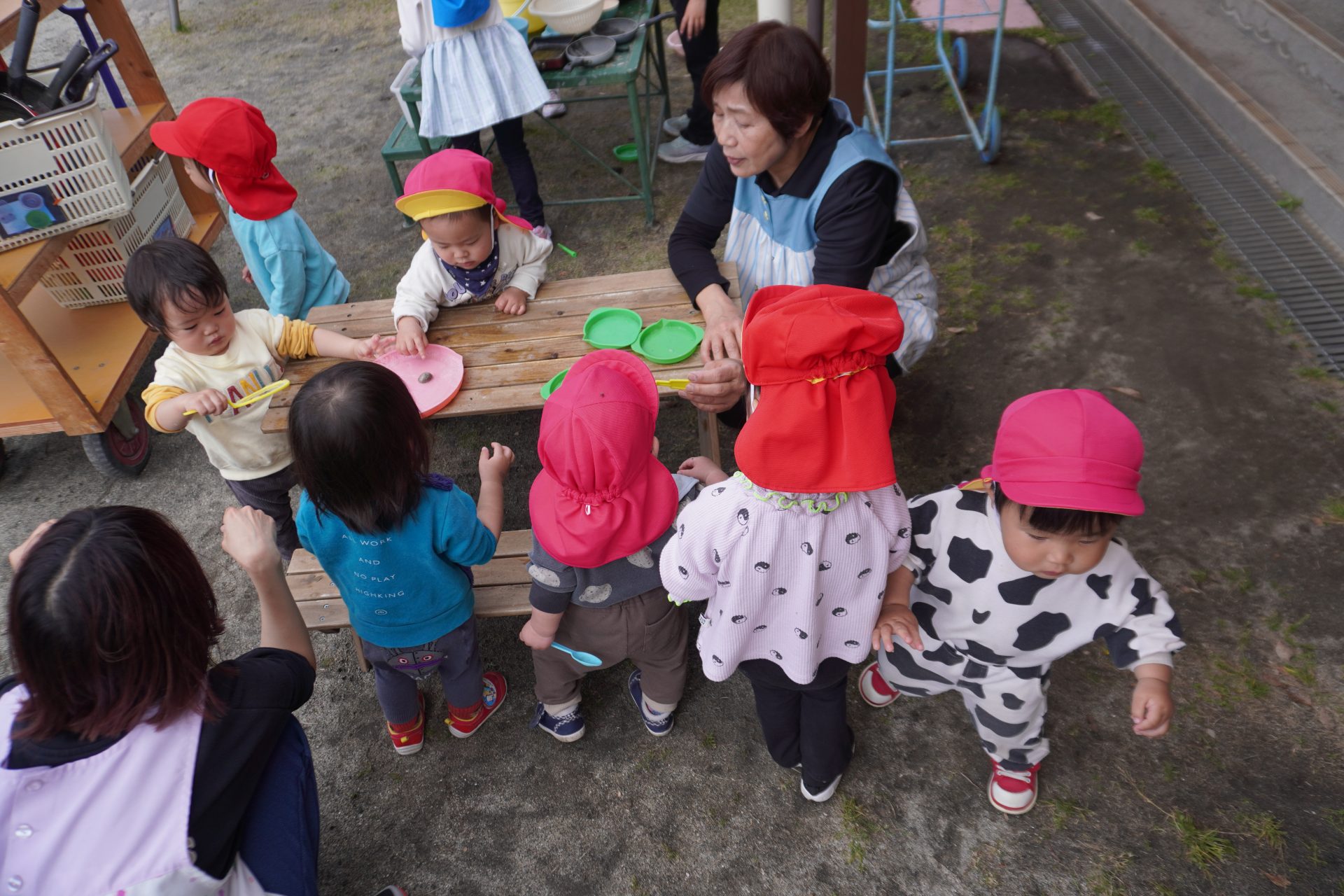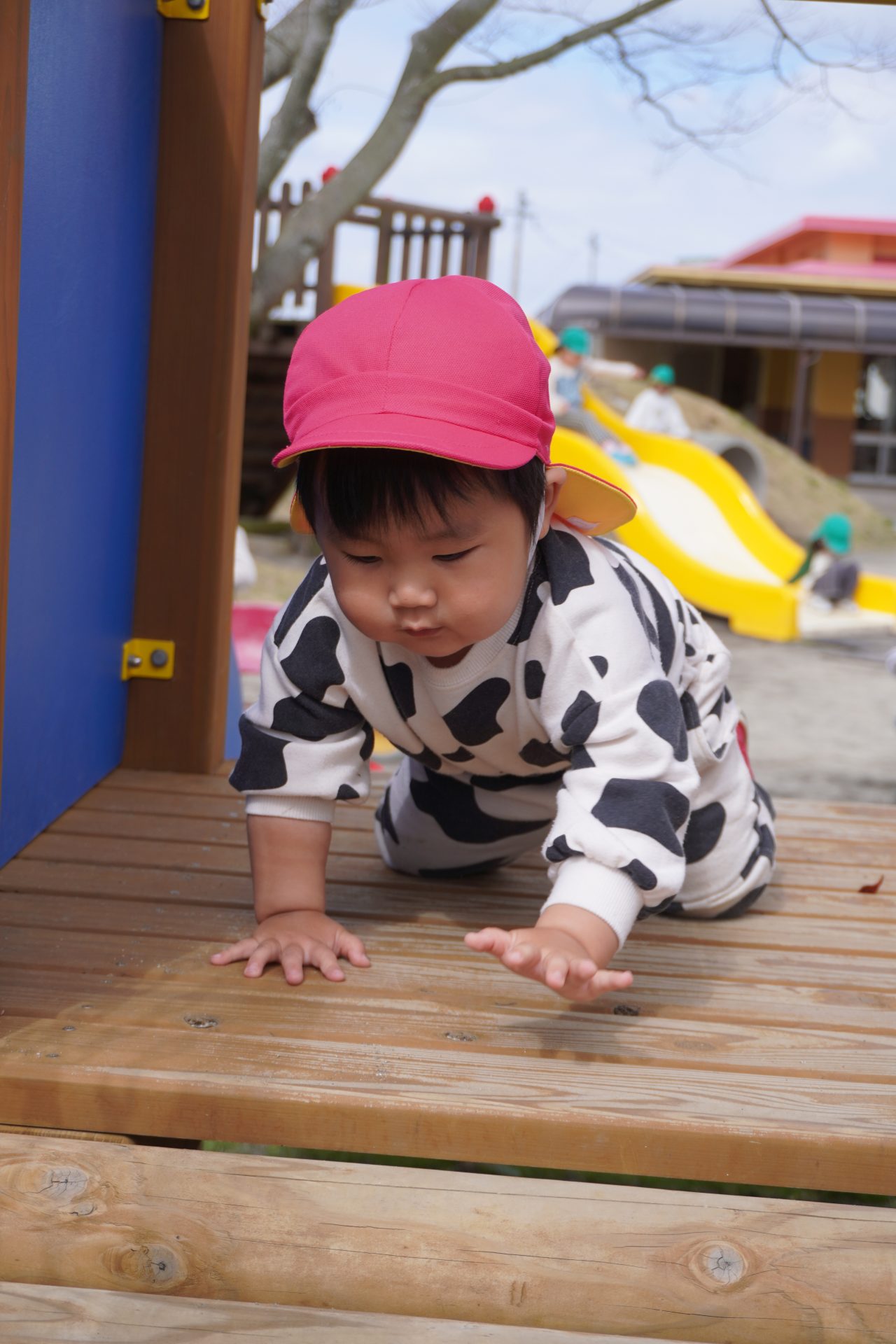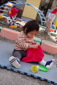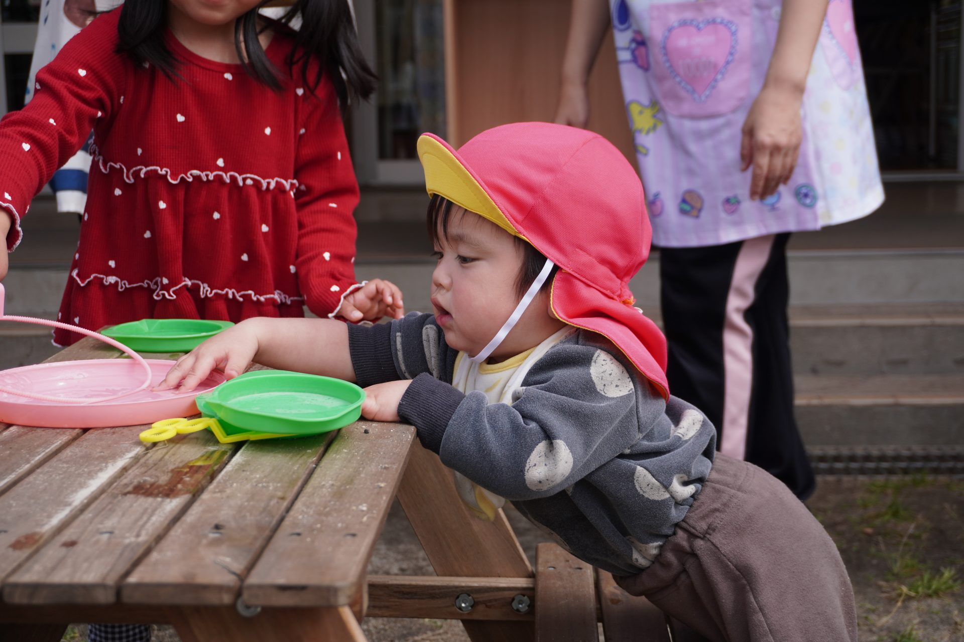 初めての園庭🌟デビュー✨✨カラー帽子が気になるみたい…💕