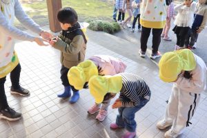 私たちは、ひまわりさんと手をつなぎます😊