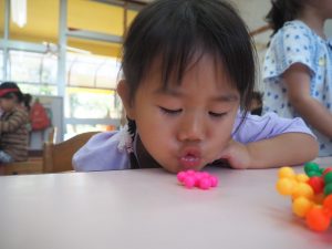回れ~。 たんぽぽ組 お部屋あそびの時間。 一生懸命「ふーーっ」とおもちゃに向かって息を吹きかけているお友達が😊 私も真似してみましたが、なかなかうまく回らず💦 息を吹きかけ、クルクル回る様子を繰り返し楽しんでいました☆ 楽しそうだね、僕も!と真似っこ。 おもちゃひとつでも夢中になれる、子ども達はやっぱり遊びの天才ですね!